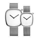 These quartz watches in their silver body and white dial ooze minimalism and are combined with a plush Milanese band to make it as much as a pleasure to wear as it is a pleasure to see. All things considered, the men’s watch features a 40 mm dial versus the 34 mm dial for the female counterpart. The stainless steel frame and sapphire glass build ensure durability to its greatest. Add to the 3 year international warranty and 30 meter water resistance, giving you the perfect formula for everlasting products, for an everlasting couple.