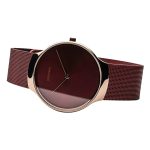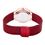 The polished rose gold coloured stainless steel case, made of pure, high quality, medical-grade stainless steel (316L), in combination with the modern red coloured milanese strap, provides an eye-catching look. The fine workmanship of the milanese strap gives the watch a refined, almost noble touch. A minimalist Sunray dial which matches the band, protected by crystal clear, scratch-resistant sapphire crystal, perfectly completes the modern look.
