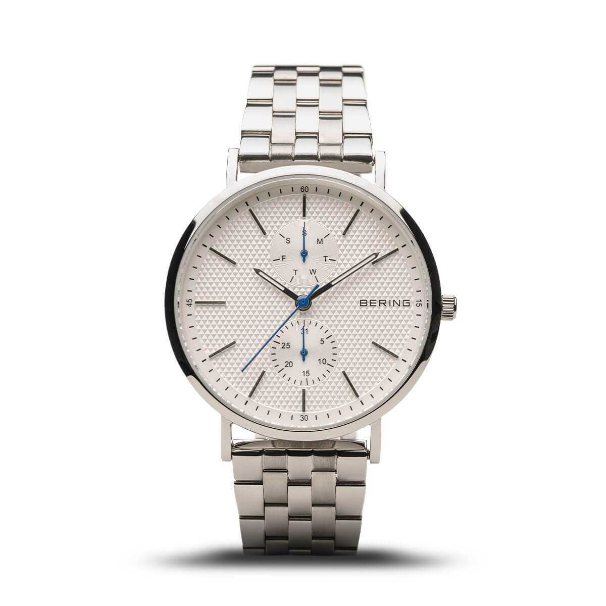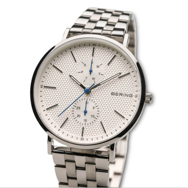 The cool look of the stainless steel complements the sharp design of the watch, resulting in a smart, modern look. Classic watches are finished with a finely brushed or highly polished stainless steel surface, completing the elegant signature BERING look.